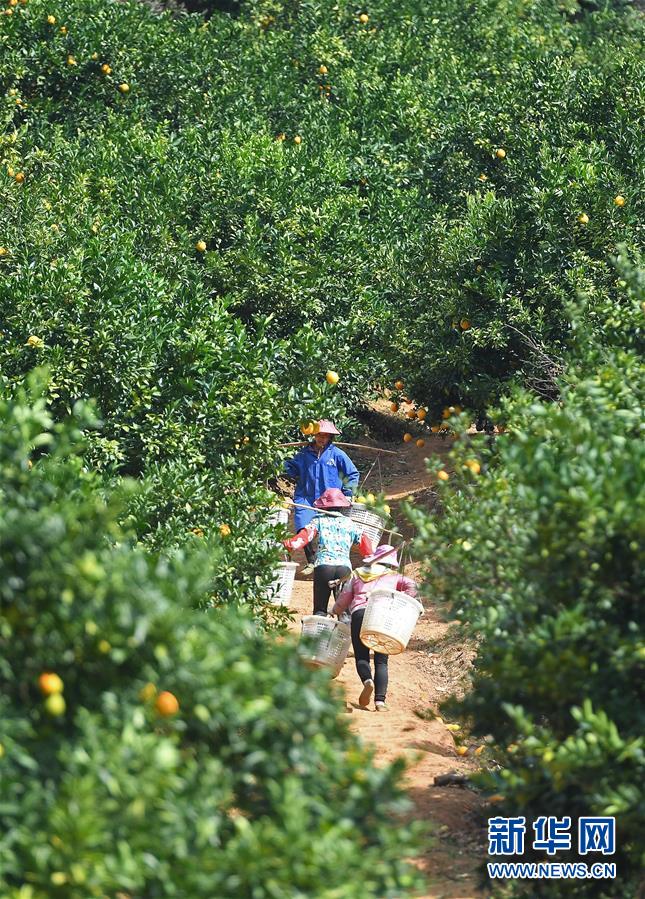 近日,江西省贛州市尋烏縣近20萬畝果園進(jìn)入豐收采摘期,當(dāng)?shù)毓r(nóng)抓住晴好天氣開始采摘臍橙,果園一派繁忙景象。新華社記者 萬象 攝