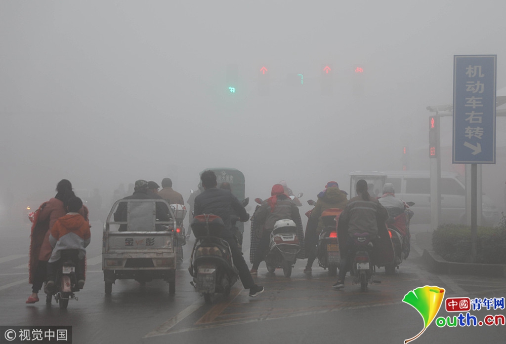 河南平頂山大霧彌漫 城區(qū)一片白茫茫