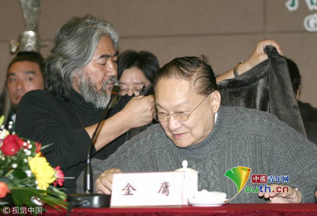 2005年1月10日,《神雕俠侶》劇組正式在第三個拍攝地—寧波象山開機。金庸與導(dǎo)演張紀中。