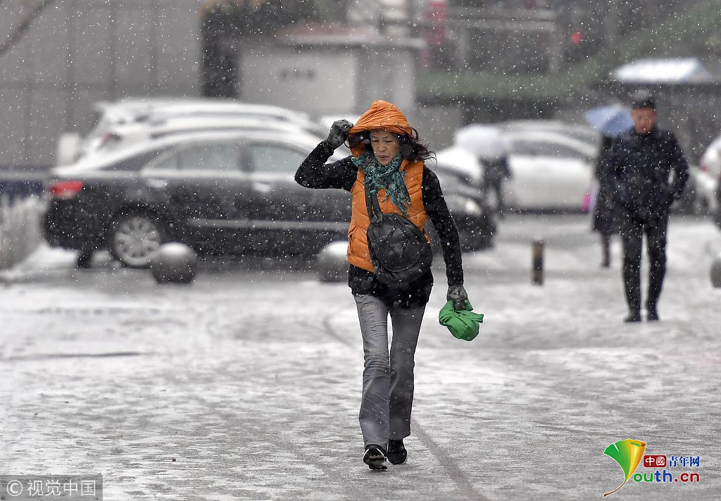 烏魯木齊迎雨雪降溫天氣 風(fēng)雪中民眾 ...