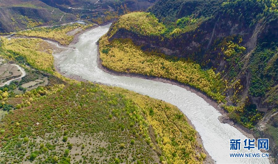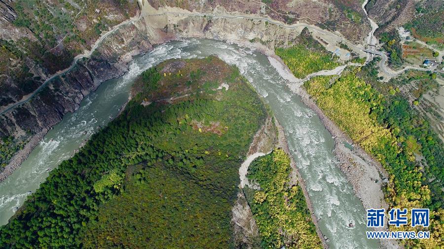 空中俯瞰通往加拉村已淹沒的公路(10月18日攝)。 新華社記者 普布扎西攝