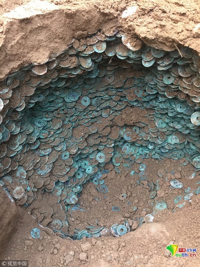 2018年11月9日,陜西渭南,白水一工地發(fā)現(xiàn)大量古幣,共清理發(fā)掘古幣920斤、約10萬枚。經(jīng)初步鑒定,這些古幣多為北宋時期錢幣,初步判斷為一般文物,對研究當(dāng)?shù)亟?jīng)濟(jì)等有一定價值。圖片:視覺中國。文字:華商報