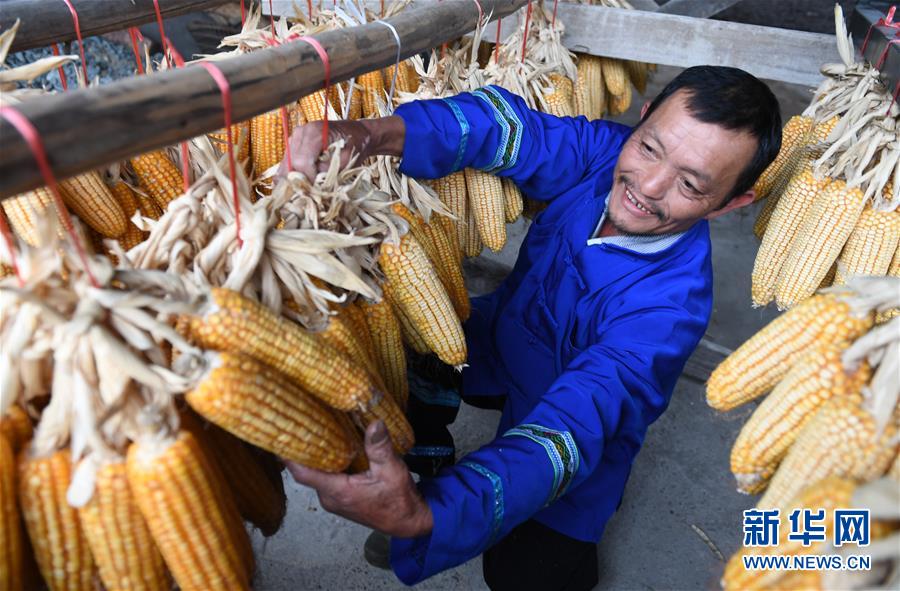 11月14日,在廣西龍勝各族自治縣泗水鄉(xiāng)八灘村,侯光祖的父親王成建在晾曬玉米。