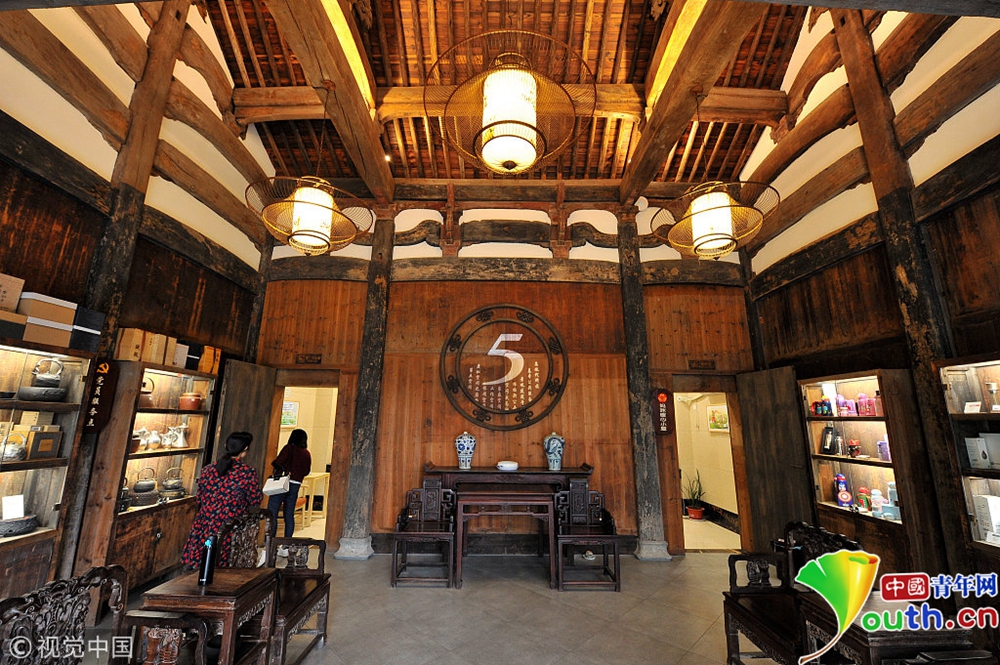 繞過“龍司”外的游廊,迎面是寬敞的古建筑廳堂,擺放中式桌椅,可供游人休息,周瑜、大小喬等東吳人物成為廁所男女標(biāo)志,廁所內(nèi)花木環(huán)繞,清新淡雅,巧妙的通風(fēng)設(shè)計(jì)讓人聞不到一絲異味。最有特色的是,詩詞書畫、特色工藝品等都進(jìn)入了這個(gè)特殊空間,讓游客在解決生理需求外還可以在這里閱讀休息,體驗(yàn)塘里的鄉(xiāng)土文化。