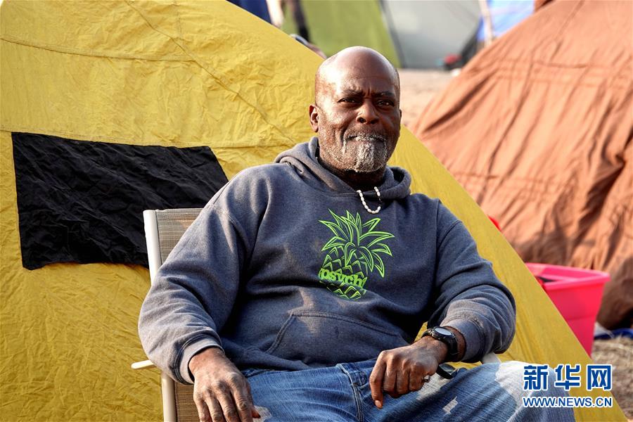 11月18日,在美國加利福尼亞州比尤特縣奇科,災(zāi)民在沃爾瑪停車場搭起帳篷暫居。 新華社記者吳曉凌攝