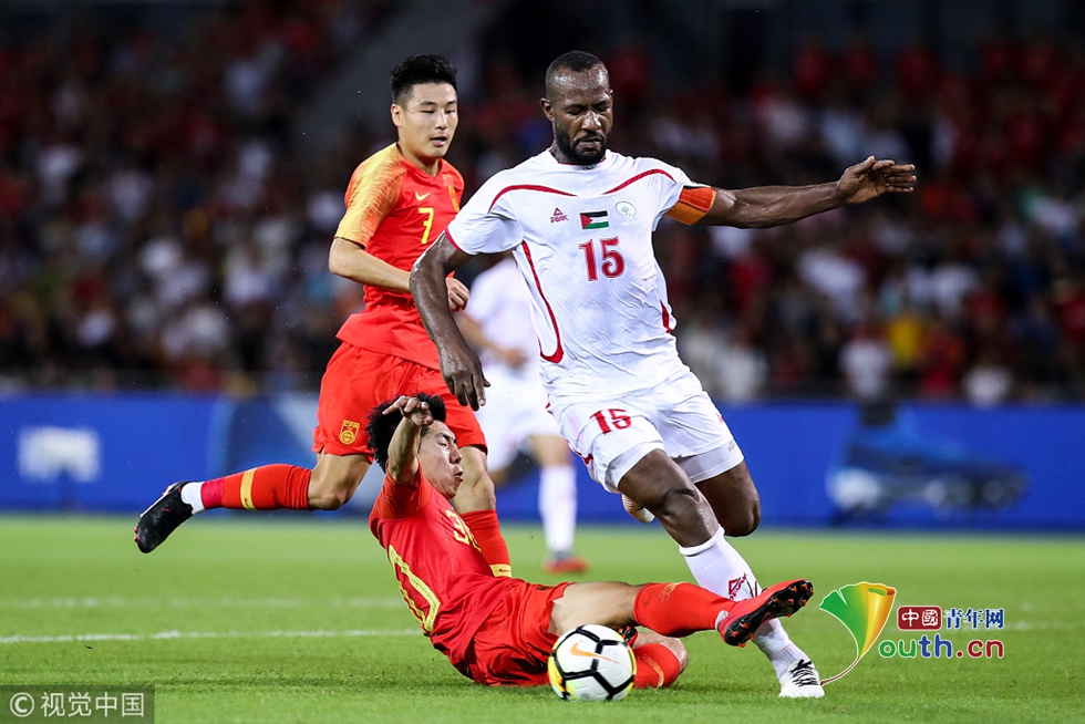 2018年11月20日,海口,2018國際足球友誼賽,中國男足Vs巴勒斯坦。郜林拼搶 圖片作者:null