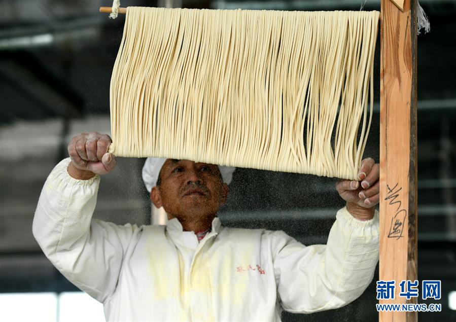河北石家莊的藁城宮面歷史悠久,因曾進貢清朝皇宮而得名。宮面采用手工制作,整個生產(chǎn)過程包括和面、開條、盤條、上軸、分面等十幾道工序,以“面細能穿針,空心有韌性”為特色,食用方便,營養(yǎng)豐富。藁城宮面制作技藝于2013年入選河北省級非物質文化遺產(chǎn)名錄。