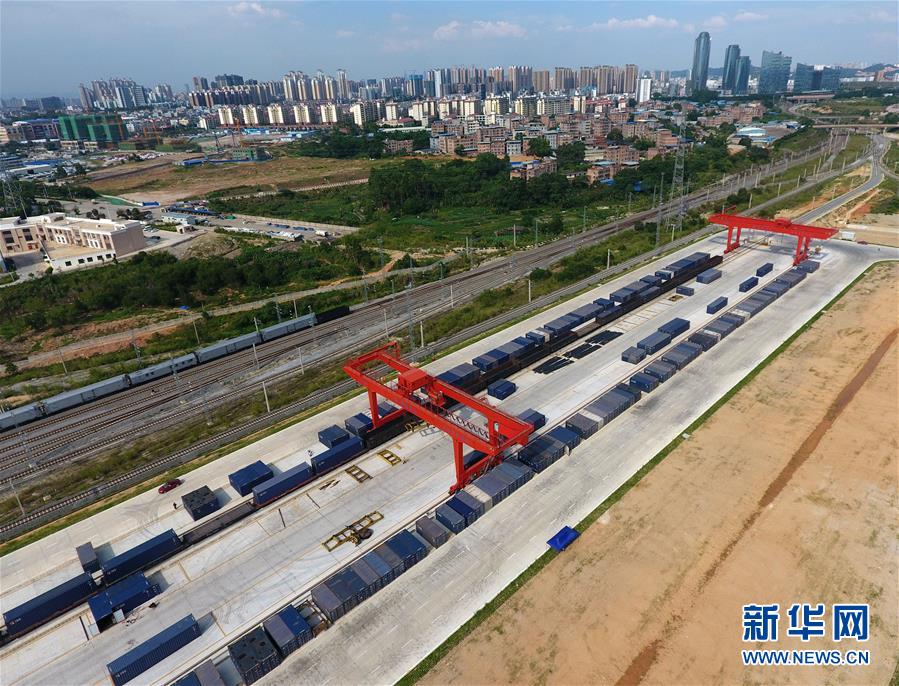 這是正在作業(yè)的南寧鐵路物流中心(5月23日無人機(jī)拍攝)。 廣西壯族自治區(qū)成立60年來,鐵路建設(shè)發(fā)生翻天覆地的變化。來自中國鐵路南寧局集團(tuán)有限公司的數(shù)據(jù)顯示,1958年廣西鐵路總里程為1346.3公里,如今廣西鐵路總里程達(dá)5191公里。廣西與周邊相鄰省份間實現(xiàn)動車“公交化”開行。此外,北部灣港—重慶班列、東盟海產(chǎn)品冷鏈班列、“百色一號”果蔬專列等的開通和運營,強(qiáng)化了鐵路供給的針對性和有效性。鐵路成為助推廣西經(jīng)濟(jì)社會快速發(fā)展的“大動脈”。 新華社記者陸波岸攝