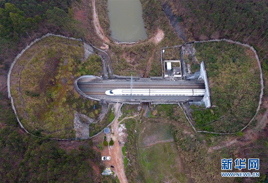 一列動車穿越南寧郊區(qū)一處隧道(2月11日無人機(jī)拍攝)。 廣西壯族自治區(qū)成立60年來,鐵路建設(shè)發(fā)生翻天覆地的變化。來自中國鐵路南寧局集團(tuán)有限公司的數(shù)據(jù)顯示,1958年廣西鐵路總里程為1346.3公里,如今廣西鐵路總里程達(dá)5191公里。廣西與周邊相鄰省份間實現(xiàn)動車“公交化”開行。此外,北部灣港—重慶班列、東盟海產(chǎn)品冷鏈班列、“百色一號”果蔬專列等的開通和運營,強(qiáng)化了鐵路供給的針對性和有效性。鐵路成為助推廣西經(jīng)濟(jì)社會快速發(fā)展的“大動脈”。 新華社記者陸波岸攝