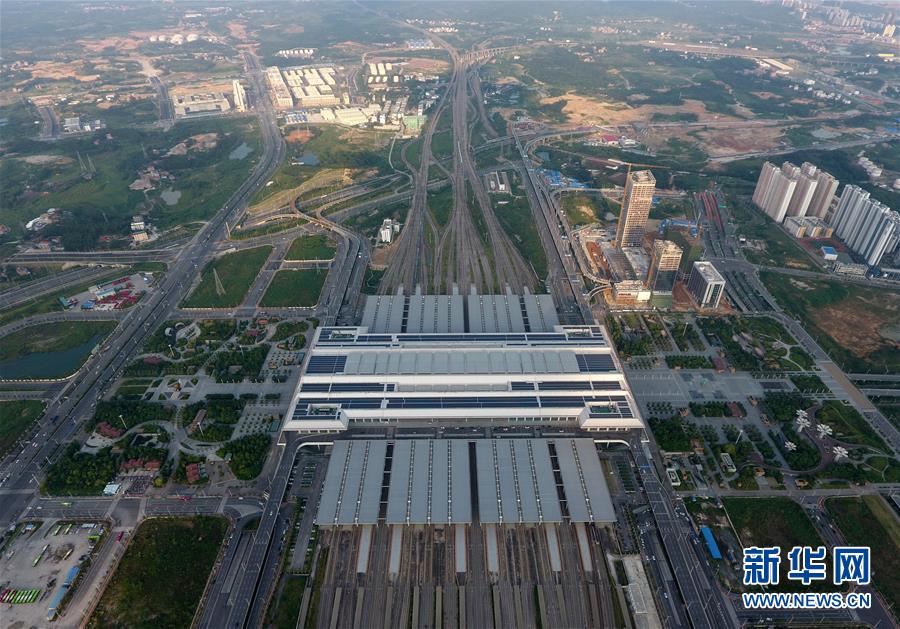 這是“零換乘”立體綜合交通樞紐——廣西南寧東站(9月4日無人機(jī)拍攝)。 廣西壯族自治區(qū)成立60年來,鐵路建設(shè)發(fā)生翻天覆地的變化。來自中國鐵路南寧局集團(tuán)有限公司的數(shù)據(jù)顯示,1958年廣西鐵路總里程為1346.3公里,如今廣西鐵路總里程達(dá)5191公里。廣西與周邊相鄰省份間實現(xiàn)動車“公交化”開行。此外,北部灣港—重慶班列、東盟海產(chǎn)品冷鏈班列、“百色一號”果蔬專列等的開通和運營,強(qiáng)化了鐵路供給的針對性和有效性。鐵路成為助推廣西經(jīng)濟(jì)社會快速發(fā)展的“大動脈”。 新華社記者陸波岸攝