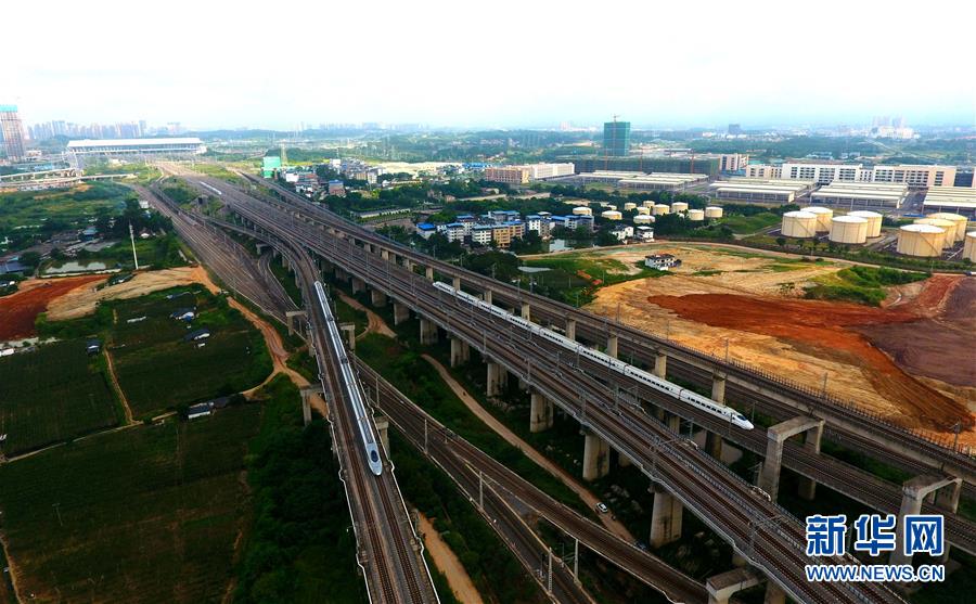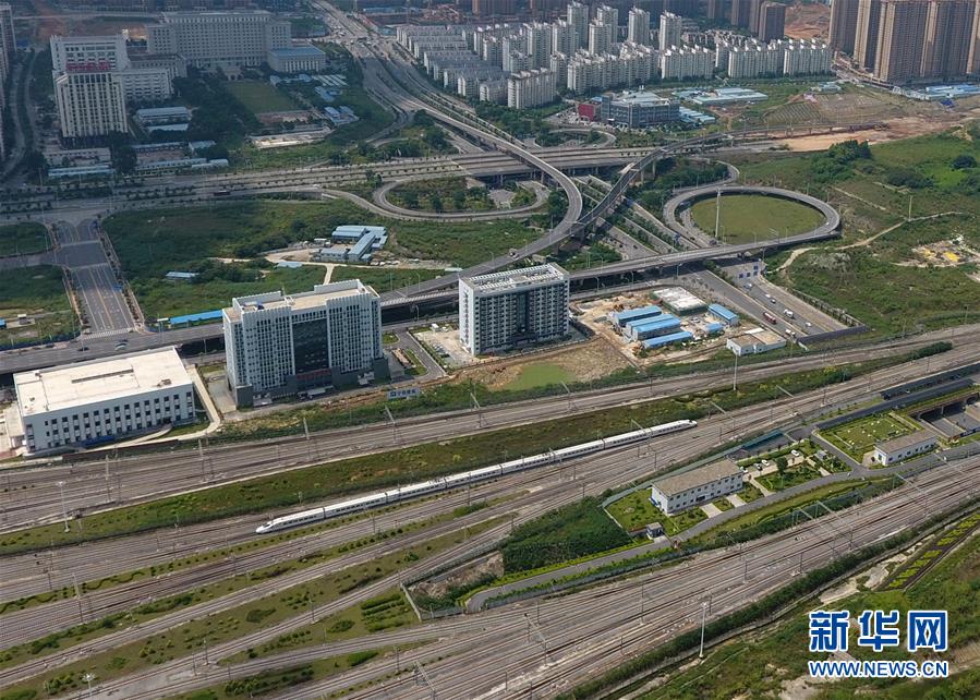 一列動車在南寧市區(qū)行駛(9月4日無人機(jī)拍攝)。 廣西壯族自治區(qū)成立60年來,鐵路建設(shè)發(fā)生翻天覆地的變化。來自中國鐵路南寧局集團(tuán)有限公司的數(shù)據(jù)顯示,1958年廣西鐵路總里程為1346.3公里,如今廣西鐵路總里程達(dá)5191公里。廣西與周邊相鄰省份間實現(xiàn)動車“公交化”開行。此外,北部灣港—重慶班列、東盟海產(chǎn)品冷鏈班列、“百色一號”果蔬專列等的開通和運營,強(qiáng)化了鐵路供給的針對性和有效性。鐵路成為助推廣西經(jīng)濟(jì)社會快速發(fā)展的“大動脈”。 新華社記者陸波岸攝