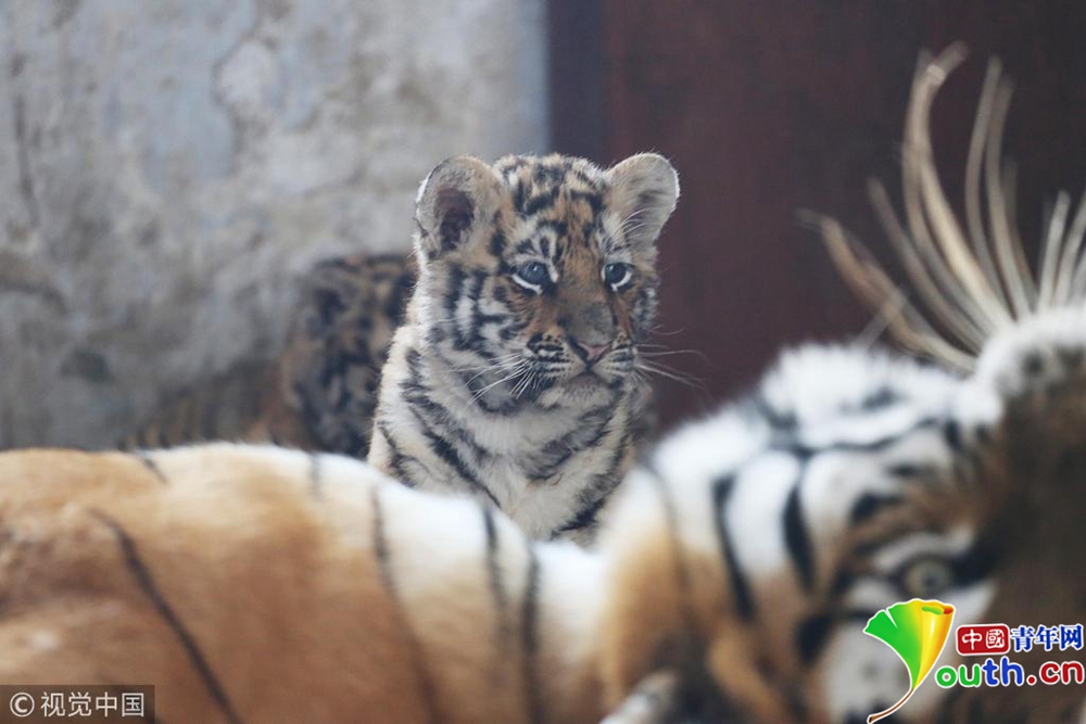 11月23日,出生一個(gè)多月的小東北虎和“虎媽”在一起。位于哈爾濱的黑龍江東北虎林園近日發(fā)布消息,該園2018年繁育計(jì)劃已經(jīng)完成,全年新增東北虎寶寶98只。