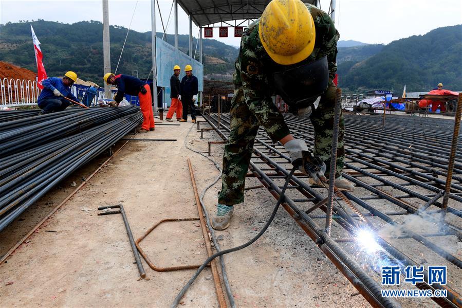 11月23日,建設(shè)者在福建閩江水口水電站壩下工程工地加緊施工。