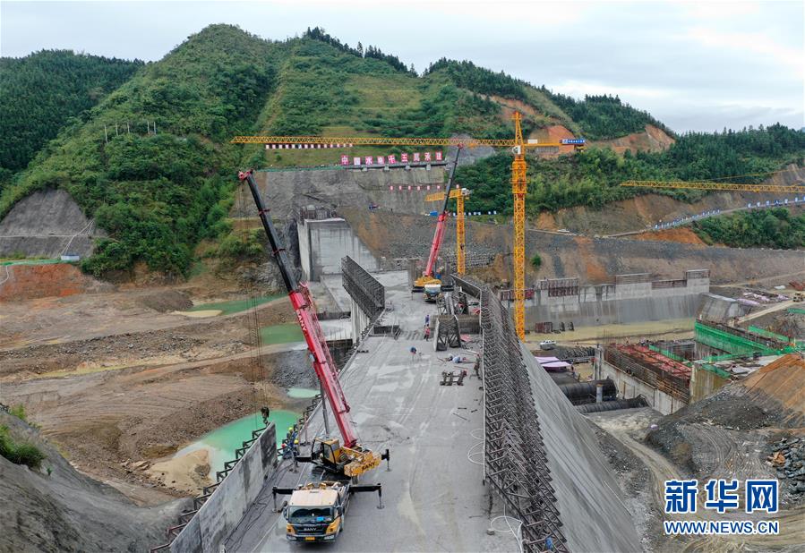 11月15日無人機(jī)拍攝的廣西落久水利樞紐工程施工現(xiàn)場。目前,廣西柳江防洪控制性工程落久水利樞紐工程各項(xiàng)建設(shè)進(jìn)展順利,主壩工程項(xiàng)目已完成總體建設(shè)的60%。落久水利樞紐工程位于廣西柳江流域支流貝江下游,是一座以防洪為主,兼顧灌溉、供水、發(fā)電和航運(yùn)等任務(wù)的綜合性水利樞紐工程。新華社記者 周華 攝