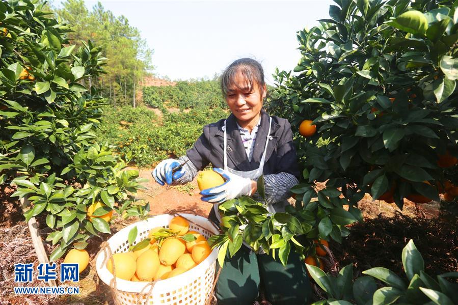 11月23日,于都縣新陂鄉(xiāng)的果農(nóng)在采摘臍橙。新華社記者 胡晨歡攝