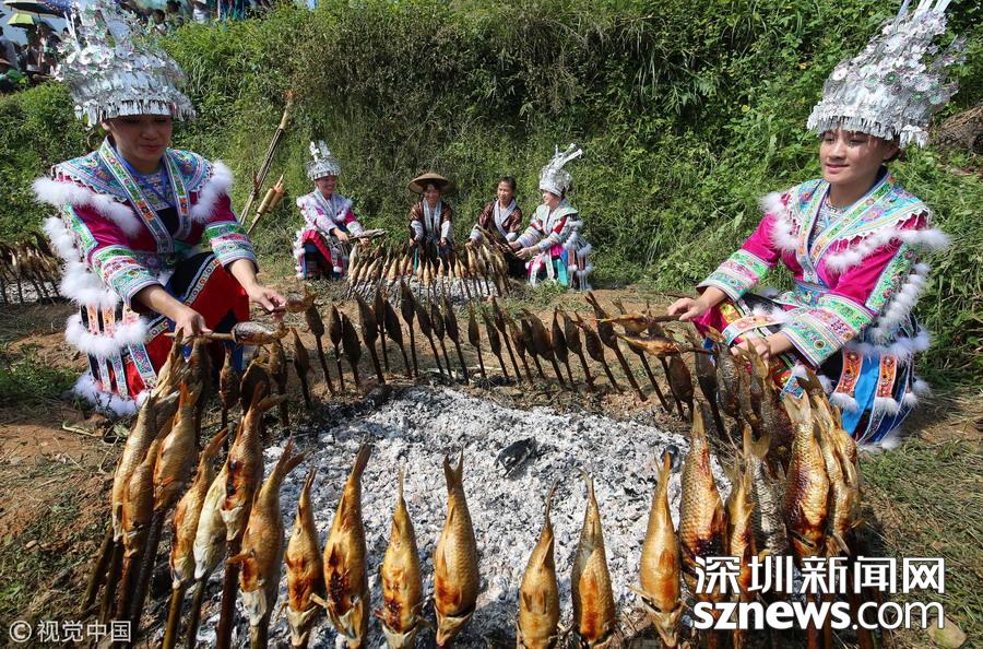 2018年11月19日,侗族同胞在參加貴州省從江縣慶云鎮(zhèn)“凍魚節(jié)”祭薩儀式。 據(jù)了解,“凍魚節(jié)”是當?shù)亍笆稀倍弊逋赜械募漓雮鹘y(tǒng)節(jié)日,定在每年農(nóng)歷的10月12日,是人們紀念祖先遷徙而舉辦的規(guī)模盛大的節(jié)日,至今已有500多年的歷史。節(jié)日期間,主人邀請親友聚餐、參與慶祝活動,共享豐收喜悅。