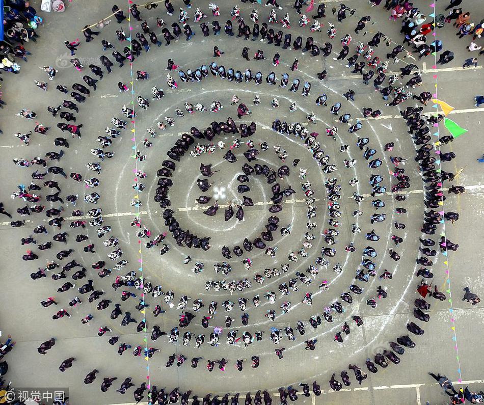 11月20日?qǐng)?bào)道,2018年11月19日,侗族同胞在參加貴州省從江縣慶云鎮(zhèn)“凍魚節(jié)”踩歌堂。(無(wú)人機(jī)拍攝)2018年11月19日,貴州省從江縣慶云鎮(zhèn)境內(nèi)的石姓侗族同胞迎來(lái)傳統(tǒng)一年一度的“凍魚節(jié)”,當(dāng)?shù)囟弊逋碇?jié)日盛裝舉行祭薩、踩歌堂、賽侗歌,慶祝豐收,祈福來(lái)年風(fēng)調(diào)雨順,五谷豐登。