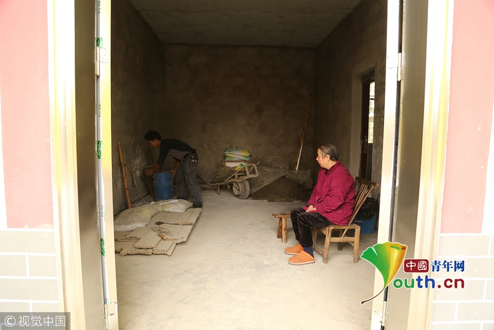 由于有王顯強(qiáng)的精心照顧,田井貴雖然癱瘓不能走路,但從未生過(guò)大病,連感冒也很少有。今年8月,因?yàn)楣S放假,王顯強(qiáng)背著母親回到老家。但是老家的房子因?yàn)槌D隉o(wú)人居住,已經(jīng)倒塌。王顯強(qiáng)母子暫時(shí)借住在叔叔王正章家里。村里的鄰居們很關(guān)心王顯強(qiáng)母子,每天總有人來(lái)和田井貴說(shuō)說(shuō)話,問(wèn)她認(rèn)不認(rèn)識(shí)自己,雖然田井貴幾乎不開(kāi)口,但她的精神狀態(tài)明顯更好了?!皨寢屵€是喜歡在老家?!笨吹侥赣H的變化,王顯強(qiáng)知道母親的心思,他決心為母親建新房。