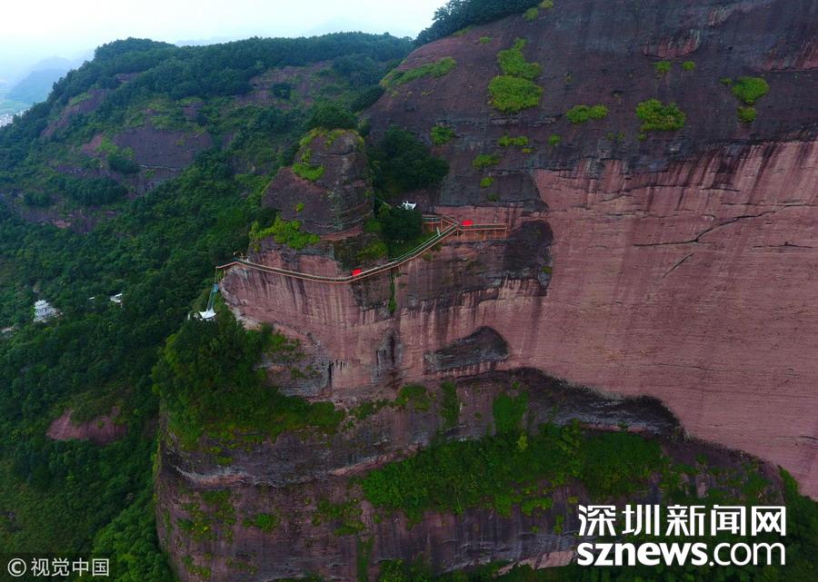 深圳新聞網(wǎng)訊  武義縣大紅巖景區(qū)在227500平方懸崖上建造的玻璃桟道,通過有關部驗收,10月1日將開放接待游客。武義縣大紅巖是國家級風景名勝區(qū),今年景區(qū)利用長650米、高350米的懸崖峭壁建造玻璃桟道,為景區(qū)又增添了一道壯觀的景點。