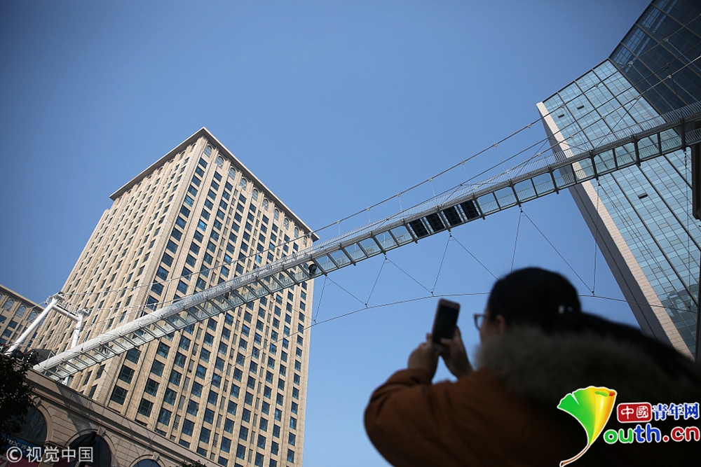 石家莊市區(qū)玻璃橋走紅 踩上去有破裂特效聲