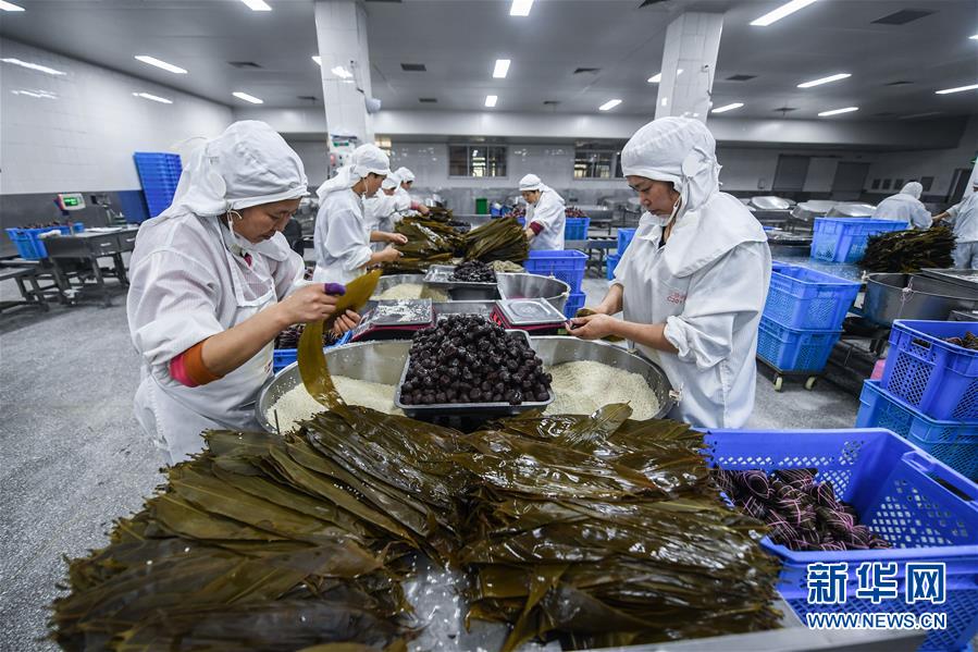烏鎮(zhèn)三珍齋傳統(tǒng)食品廠的工人在包粽子(11月20日攝)。 新華社記者 徐昱 攝