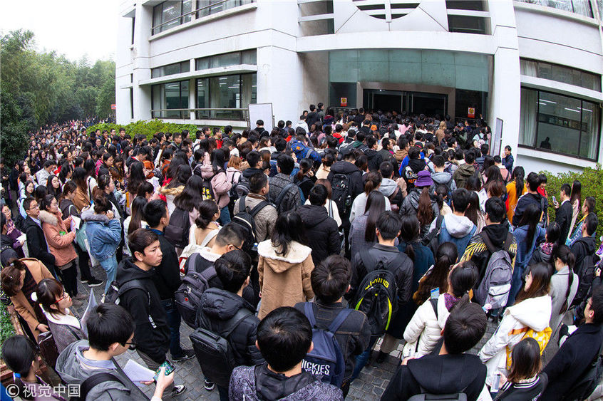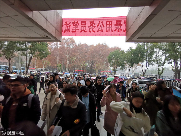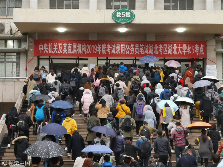 2018年12月2日,湖北武漢一公務(wù)員考點(diǎn),密密麻麻的考生進(jìn)向考場(chǎng)。當(dāng)日,2019年度中央機(jī)關(guān)及其直屬機(jī)構(gòu)公務(wù)員招考筆試開考。楚林/視覺中國(guó)
