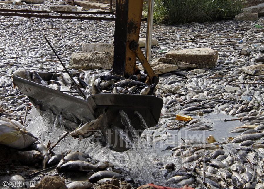伊拉克河流一夜之間漂浮數萬死魚 密密麻麻擠滿河道