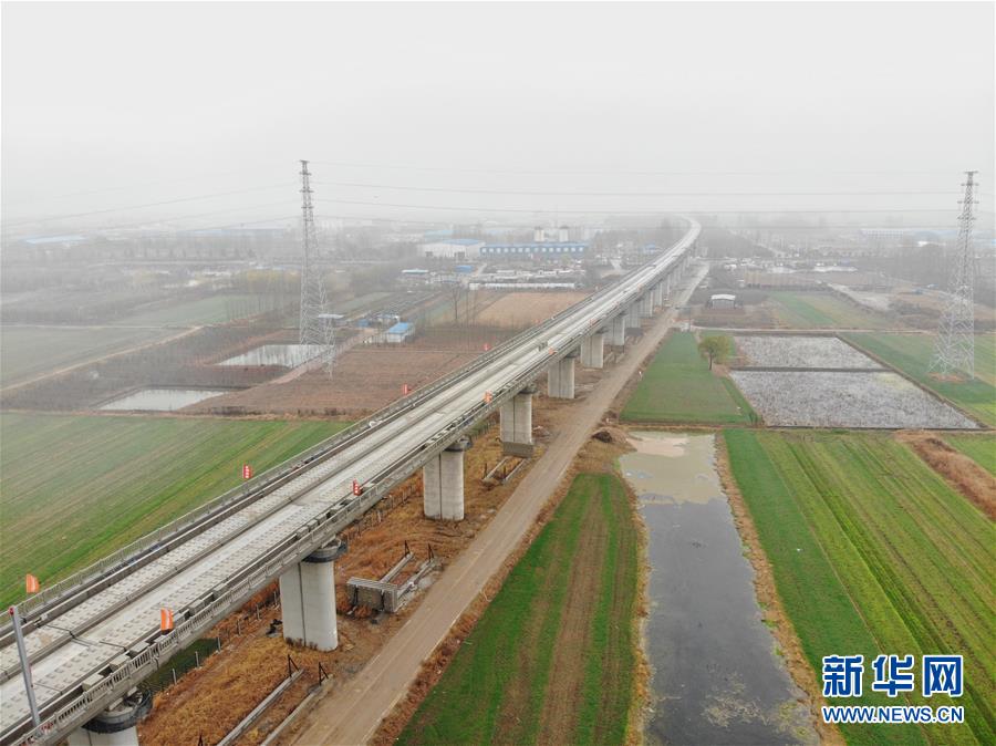 12月2日拍攝的魯南高鐵山東臨沂段(無人機拍攝)。