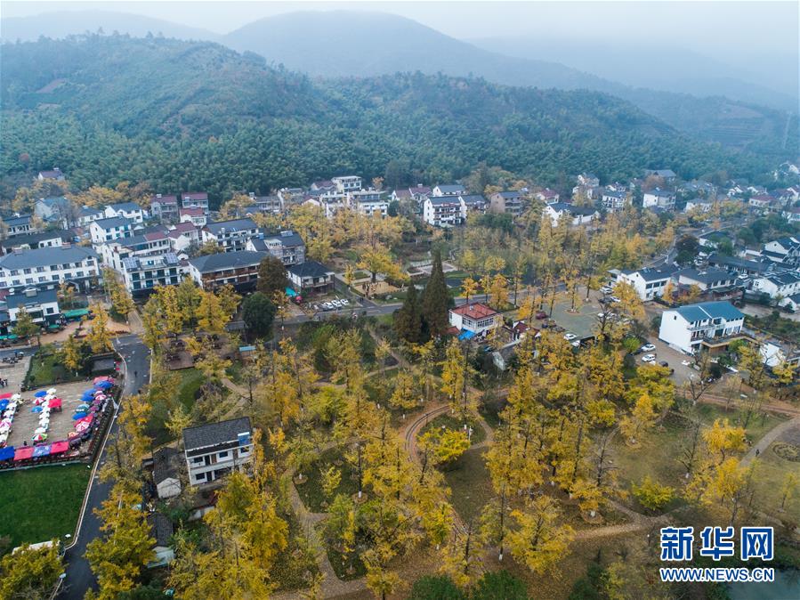 空中俯瞰十里銀杏林長廊(11月16日無人機拍攝)。近日,在浙江省長興縣小浦鎮(zhèn),“十里銀杏長廊”和近千畝花海經(jīng)過近一年的升級改造后,以嶄新的面貌與游客見面?;ê!⒂^光小火車、古村民宿、銀杏長廊等旅游項目全面提升了小浦鎮(zhèn)鄉(xiāng)村旅游的品質(zhì)。新華社記者 徐昱 攝