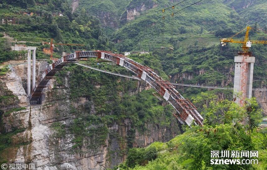 2018年5月30日,云南昭通,鸚哥大橋完成最后一段35米引橋現(xiàn)澆箱梁作業(yè),標(biāo)志著“鸚哥溜索改橋”主體工程完工,進(jìn)入最后階段的橋面鋪裝和防護(hù)欄施工,預(yù)計(jì)6月底建成通車。