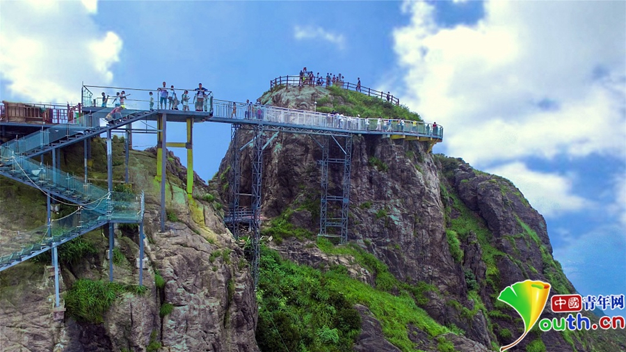 經(jīng)過(guò)一年的建設(shè),位于素有“嶺南第一險(xiǎn)峰”與“南粵小華山”之稱的廣東清遠(yuǎn)連山金子山,有一條玻璃天梯建成。下個(gè)月10日,玻璃天梯將正式對(duì)游客開放。