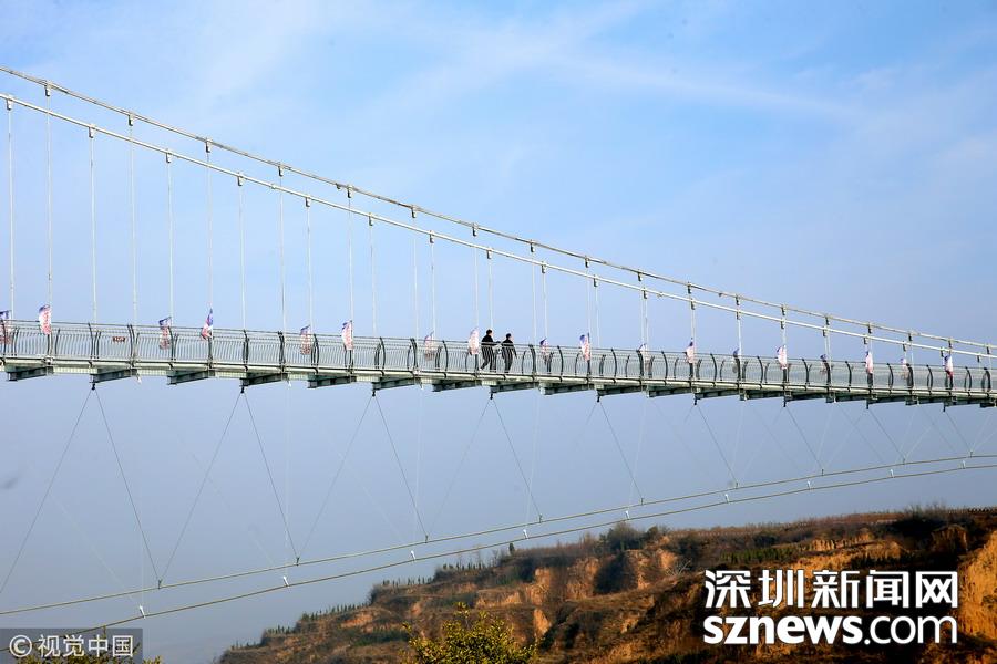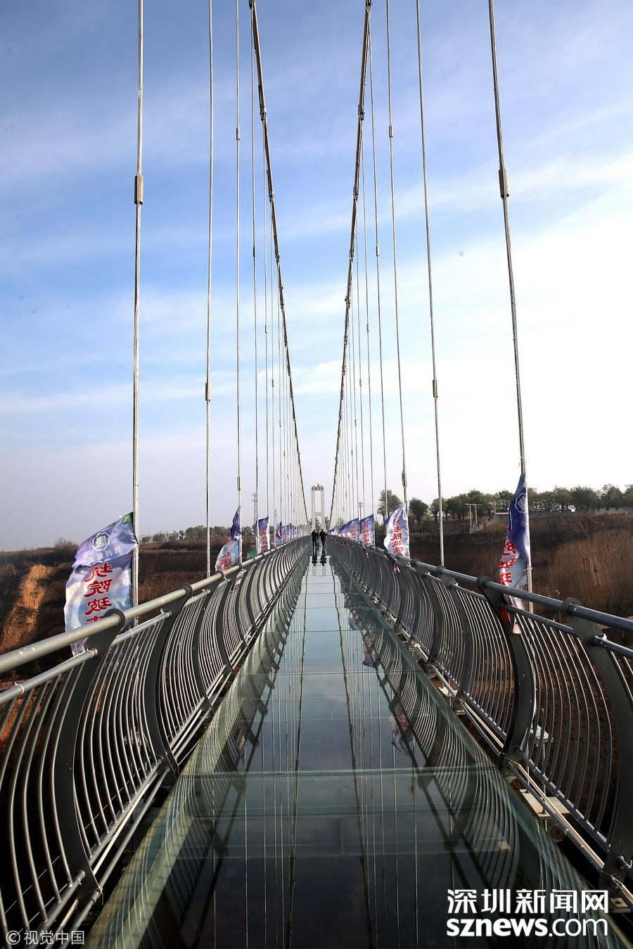 深圳新聞網(wǎng)訊 河南三門峽,位于陜州地坑院景區(qū)玻璃天橋。該項(xiàng)目橋梁總投資2600萬(wàn)元,全長(zhǎng)368米,寬3米,高108米,是目前河南省內(nèi)最長(zhǎng)的玻璃天橋,還將陸續(xù)對(duì)外開放夜景效果、聲光效果以及更多的體驗(yàn)效果,逐步打造成整個(gè)豫西地區(qū)乃至全省的旅游打卡新地標(biāo)。
