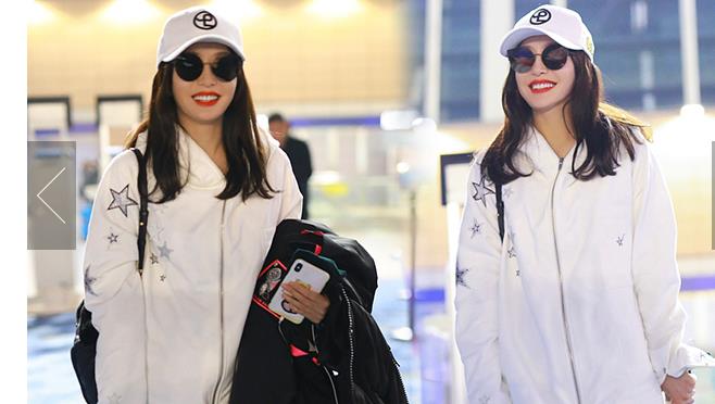 秦嵐潮味棉服亮相機場 口罩遮面露甜笑