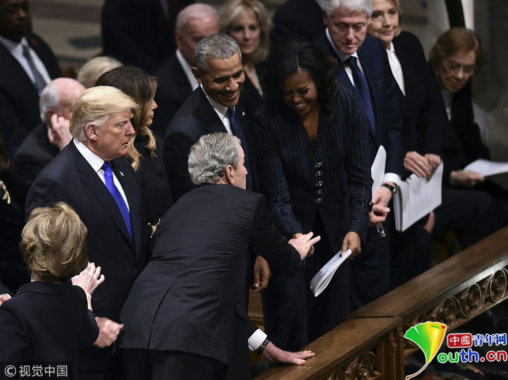 老布什國(guó)葬現(xiàn)“輕松”小插曲 小布什又給米歇爾“發(fā)糖”了!