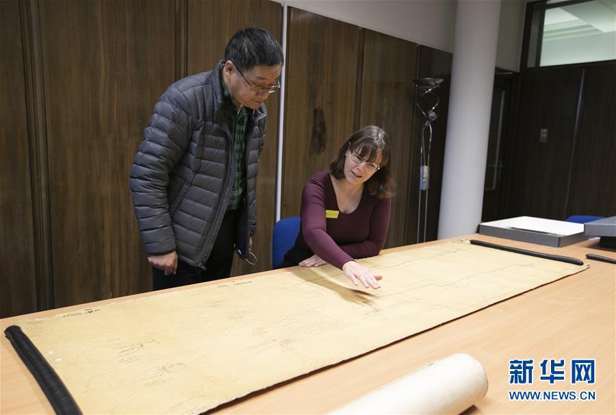 11月2日,在英國紐卡斯?fàn)柕奶┒鳌枡n案館,檔案管理員瑞秋·吉爾(右)向新華社記者介紹致遠(yuǎn)艦設(shè)計(jì)圖紙。 新華社記者日前在紐卡斯?fàn)柼┒鳌枡n案館查找北洋海軍史料時發(fā)現(xiàn)一套七張、檔案名為“中國巡洋艦舵機(jī)設(shè)計(jì)圖”的原始圖紙。塵封百年,甲午海戰(zhàn)中抗擊日艦后沉沒的清北洋海軍致遠(yuǎn)艦部分原廠設(shè)計(jì)圖紙?jiān)谄浣ㄔ斓亍~卡斯?fàn)柺械囊患覚n案館首次被發(fā)現(xiàn),為打撈那段悲壯的歷史提供了重要參考。 新華社記者 韓巖 攝