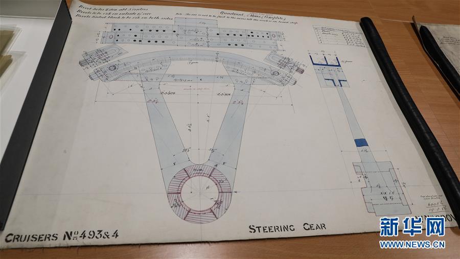 這是11月2日,在英國紐卡斯?fàn)柵臄z的橫跨在泰恩河上的紅白兩色的鋼鐵旋轉(zhuǎn)橋泰恩橋。當(dāng)年,致遠(yuǎn)艦就是從這里駛向大海,開啟東方征程。 新華社記者日前在紐卡斯?fàn)柼┒鳌枡n案館查找北洋海軍史料時發(fā)現(xiàn)一套七張、檔案名為“中國巡洋艦舵機(jī)設(shè)計(jì)圖”的原始圖紙。塵封百年,甲午海戰(zhàn)中抗擊日艦后沉沒的清北洋海軍致遠(yuǎn)艦部分原廠設(shè)計(jì)圖紙?jiān)谄浣ㄔ斓亍~卡斯?fàn)柺械囊患覚n案館首次被發(fā)現(xiàn),為打撈那段悲壯的歷史提供了重要參考。 新華社記者 韓巖 攝