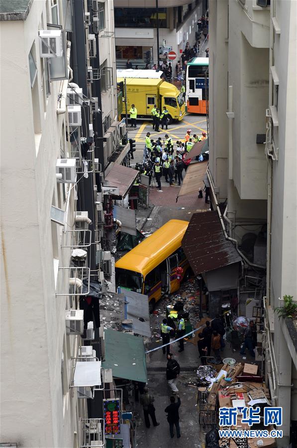 這是12月10日在香港北角拍攝的事故現(xiàn)場。 12月10日下午2時(shí)左右,香港北角發(fā)生車禍,一輛校巴沖上行人路。 新華社記者 盧炳輝 攝
