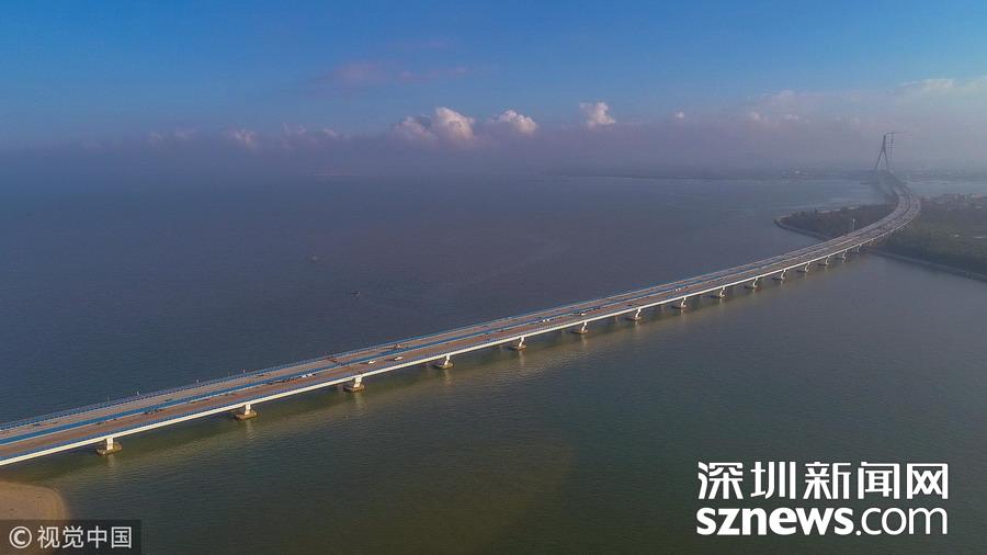 深圳新聞網(wǎng)訊 2018年12月5日,海口,高空航拍橫跨??诒备蹗u的鋪前大橋。 據(jù)了解,鋪前大橋是目前國內(nèi)抗震設(shè)防烈度最高、設(shè)計(jì)基本風(fēng)速最大,且跨越地震帶活動斷層的跨海大橋,是國內(nèi)首座跨地質(zhì)斷裂帶的大型橋梁??偼顿Y約30.1億元,該將在今年年底建成通車,將加快海南自貿(mào)港建設(shè)而助力。