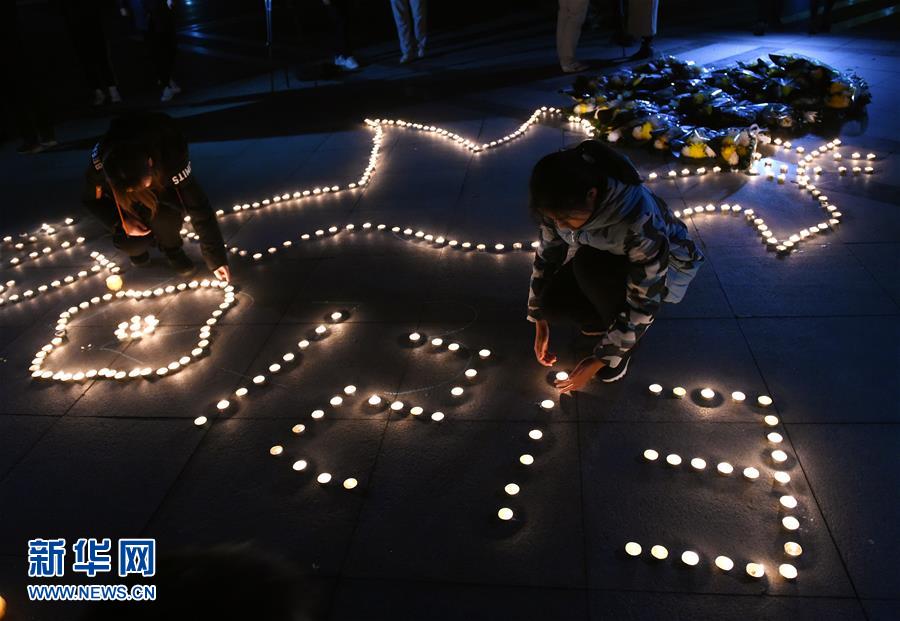 12月12日,學(xué)生將組成紀(jì)念圖案的白燭擺放整齊。 當(dāng)晚,南京東南大學(xué)學(xué)生在校園舉行“燭光祭”活動(dòng),悼念南京大屠殺遇難同胞。學(xué)生們點(diǎn)燃白燭,獻(xiàn)花默哀,表達(dá)哀思。 新華社記者 孫參 攝
