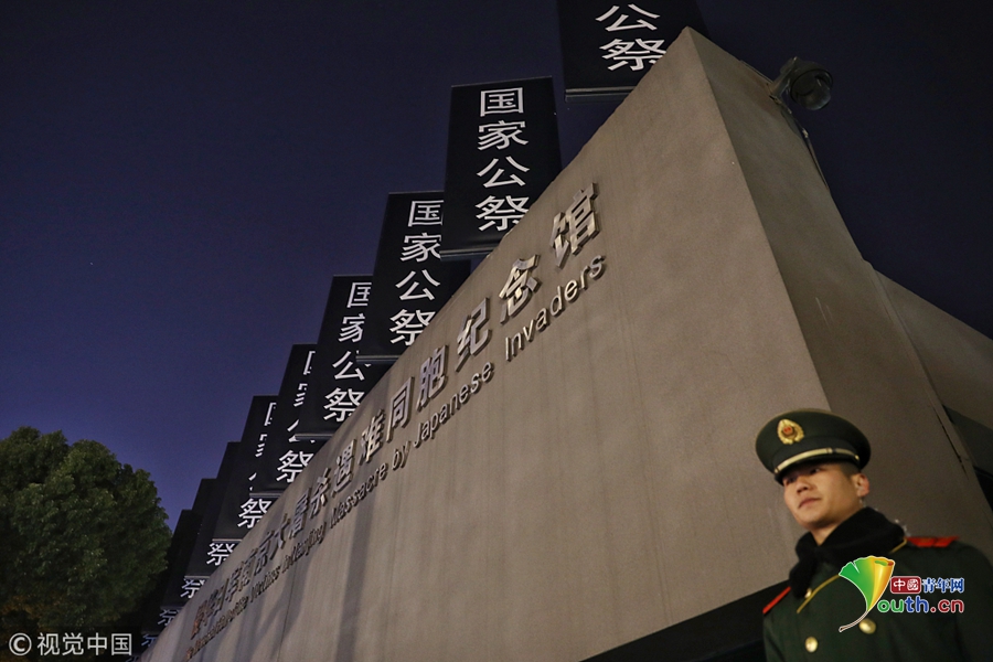 2018年12月12日晚,江蘇南京,侵華日軍南京大屠殺遇難同胞紀念館沿線道路莊嚴肅穆、安保和工作人員做好了準備,迎接第五個南京大屠殺死難者國家公祭日。2018年是南京大屠殺慘案發(fā)生81周年,第五個南京大屠殺死難者國家公祭儀式將于12月13日舉行。圖片作者:尼克