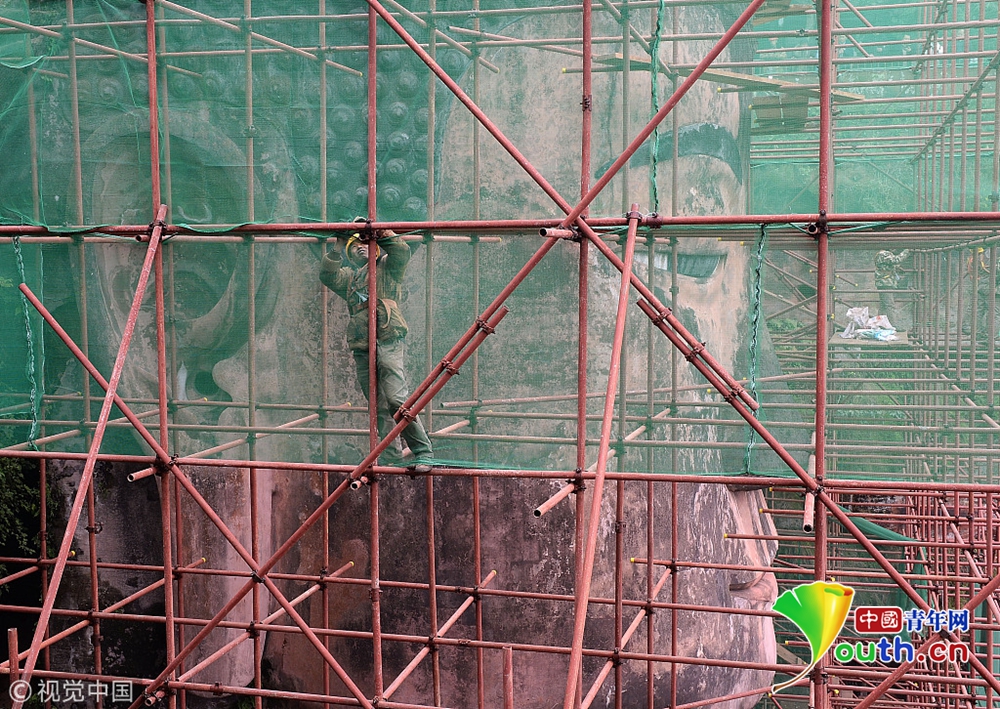 樂(lè)山大佛本體已全遮蔽 胸腹開(kāi)裂病害原因基本查明