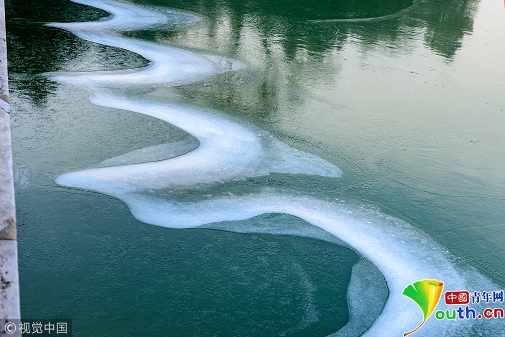 昆明湖水面結(jié)冰。