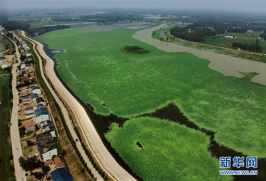 這是河南省民權(quán)縣任莊村內(nèi)的荷花生態(tài)園(7月7日無人機拍攝)。 新華社記者 李安 攝