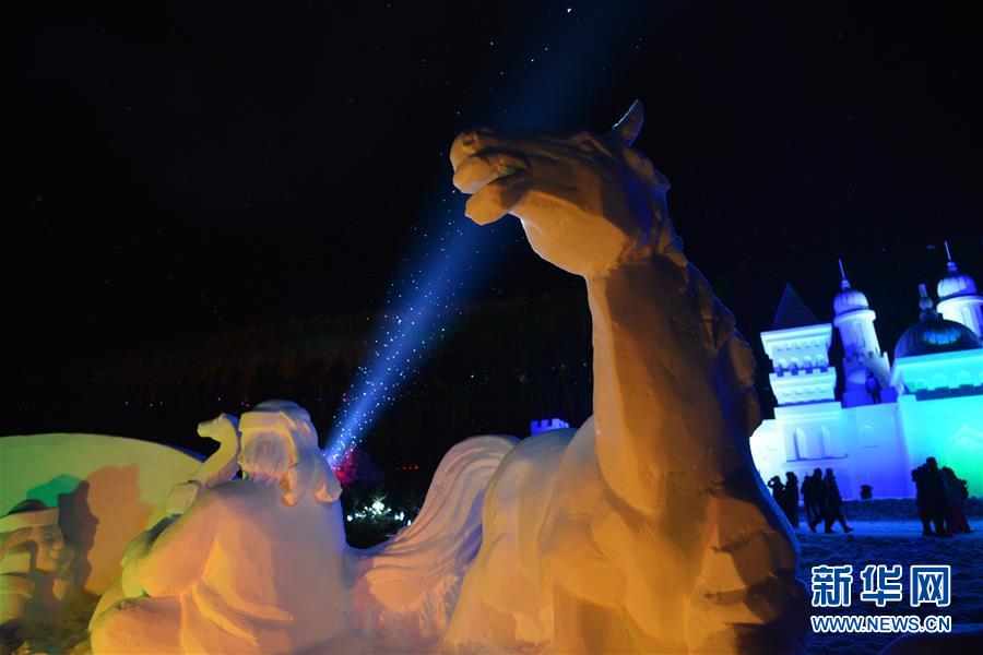 這是在冰雪節(jié)開(kāi)幕式上展出的雪雕(12月21日攝)。新華社記者鄒予攝