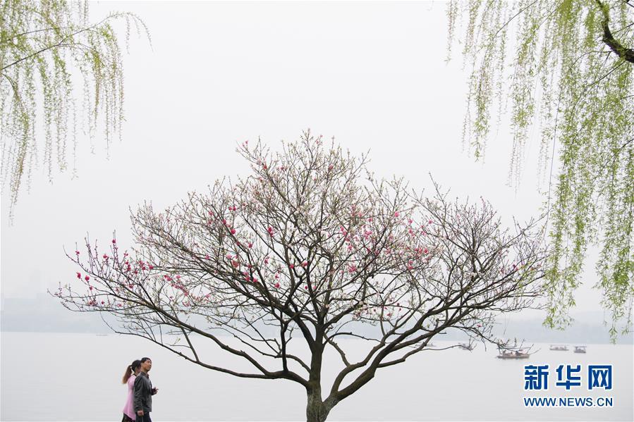 3月26日,游客在杭州西湖白堤上游覽。 在即將過去的2018年,各地攝影師用鏡頭記錄下四季中國。大江南北,一幅幅色彩斑斕的美麗畫卷徐徐展開。 新華社記者 翁忻旸 攝
