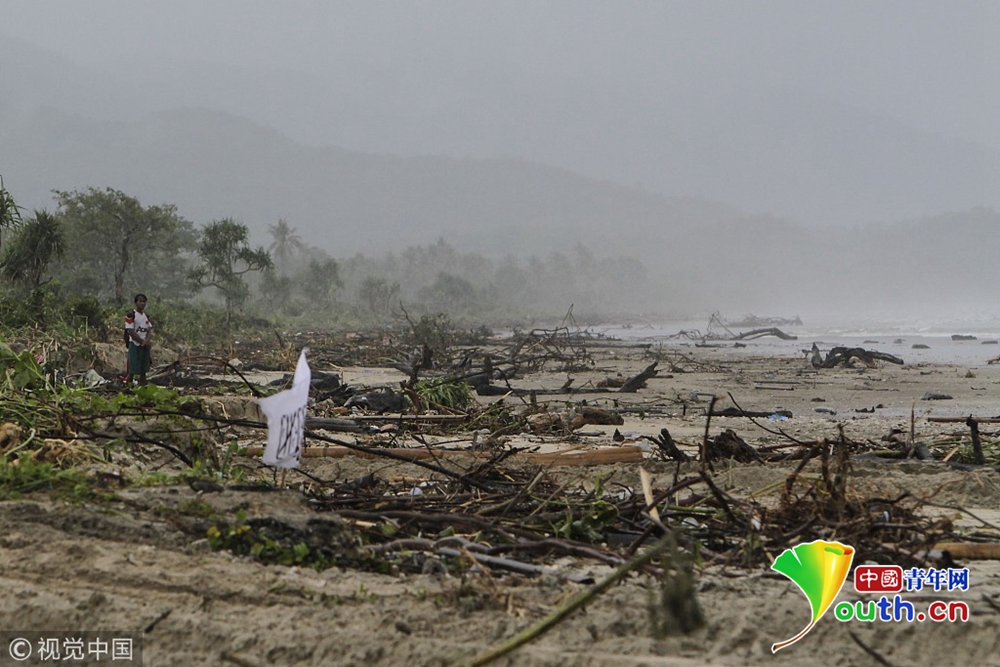 距海邊近百米范圍內(nèi)的房屋或完全倒塌或嚴(yán)重?fù)p毀。
