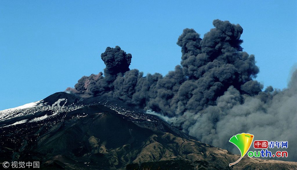 意大利埃特納火山持續(xù)噴發(fā) 黑煙滾滾 ...