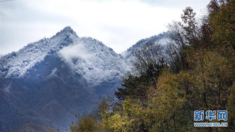 11月5日在西(安)成(都)高鐵線佛坪站站臺上拍攝的秦嶺景色。 新華社記者陶明攝