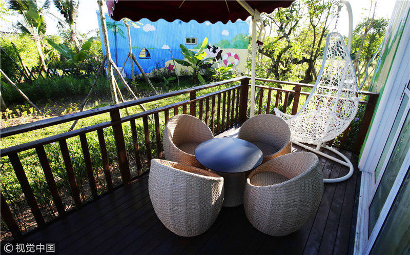 2017年8月9日,海南屯昌,坡心鎮(zhèn)豬哈哈的農(nóng)場(chǎng)正式推出“集裝箱客房”項(xiàng)目,這也是海南首家主題式集裝箱住宿。齊淼/視覺(jué)中國(guó)