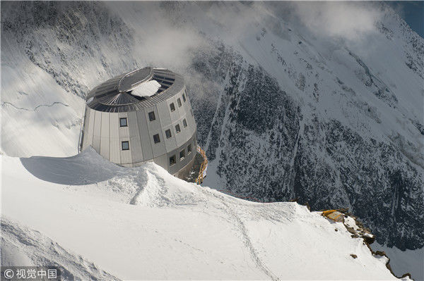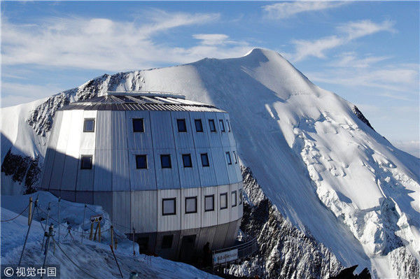 2012年8月6日消息(具體拍攝時(shí)間不詳),法國(guó)圣熱爾維,一座坐落在阿爾卑斯山脈上海拔3835米的旅館近日落成,旅館目前處于試運(yùn)行狀態(tài)直到8月底向公眾開放。這座旅館共有120個(gè)床位,達(dá)到了高環(huán)境質(zhì)量標(biāo)準(zhǔn)。